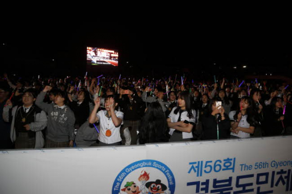 공식행사 이후 축하공연으로 홍진영과 제56회 도민체전 홍보대사인 모모랜드, 그리고 월드스타 싸이의 공연이 펼쳐졌다. 역대 상주에서 개최된 행사 중 2만 5천명 이상의 가장 많은 시민이 운집했지만 상주시민은 안전행사를 위해 안내에 적극 협조하고, 배려하며 전혀 동요 없이 질서 있게 관람했다.