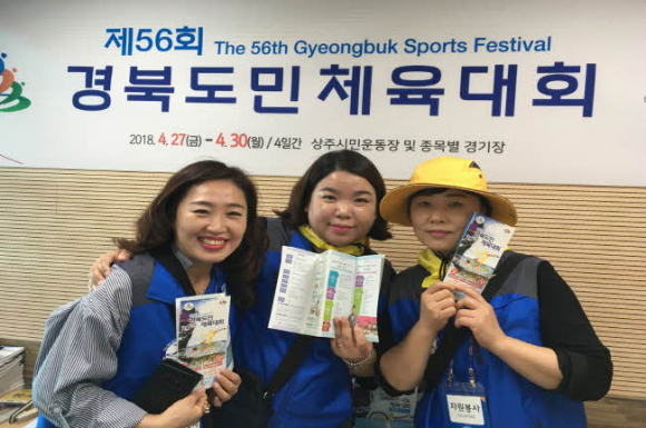 대회기간 각자의 영역에서 활동하고 있는 3040자원봉사자를 소개하고자 한다. ‘세잎클로버 봉사단’은, 자원봉사단 이름처럼 ‘행복’한 삶을 살기위한 방법으로, ‘자원봉사’를 실천하기 위해 모인, 중앙초등학교 학부모들로 구성된 자원봉사단이다. 대회기간 동안 시민운동장 주경기장에서 종합안내소를 운영했다. 세잎클로버 조선희 회장은 “경기장을 찾은 많은 방문객과 선수단에게 ‘상주시의 얼굴’이라는 자긍심을 가지고 활동하고 있다.”고 소감을 밝혔다.