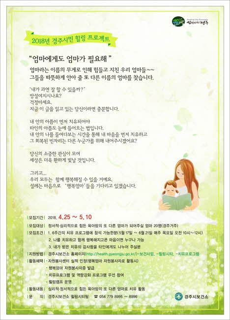 경주시민 힐링프로젝트 ‘엄마에게도 엄마가 필요해’ 봉사자 모집