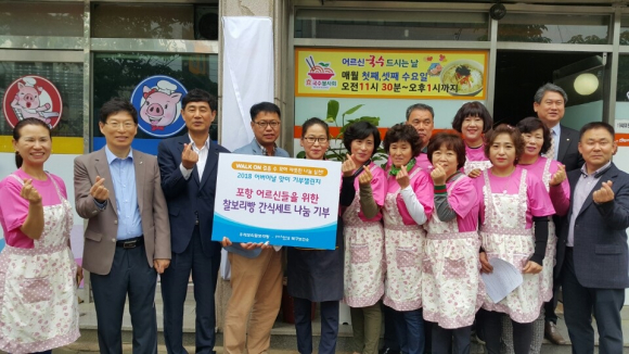 이번 기부 전달식은 모바일 걷기 앱인 워크온을 이용한 기부챌린지 행사로 4월 23일부터 5월 1일까지 진행하여 총 3천만 보의 공동목표 걸음 수가 달성되어 우리보리 찰보리빵에서 총150개의 간식세트(찰보리빵 600개)를 포항 어르신들을 위해 전달했다.