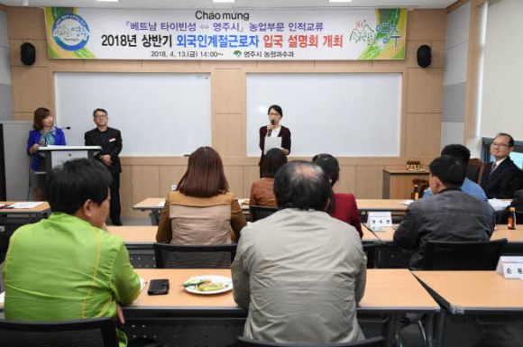이동규 농정과수과장은 “영주시와 베트남 타이빈성과 체결한 국제·농업교류 협약(MOU)을 바탕으로 양국 관계자간 상호 긴밀한 협의를 통해 외국인계절근로자 교류 사업을 확대해 나가겠다”고 말했다. |