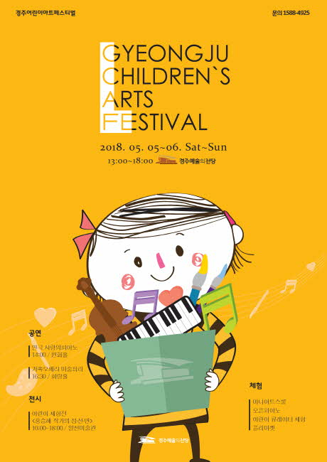 경주문화재단은 어린이날 연휴(5일 ~ 6일)를 맞아 ‘2018 경주어린이아트페스티벌’ 행사를 경주예술의전당에서 개최했다. 이날 행사는 어린이날 연휴를 맞아 예술을 주제로 공연, 전시, 교육 체험, 먹거리 등으로 구성되었다.