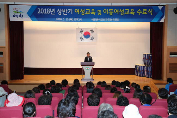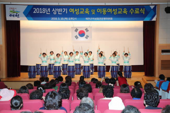 예천군여성회관 운영위원회(위원장 이재은)는 10일 오후 2시 청소년수련관에서 이재윤 예천 부군수와 관내 여성단체협의회장단, 수료생 등 200여명이 참석한 가운데 ‘2018년 상반기 여성교육 수료식’을 가졌다.