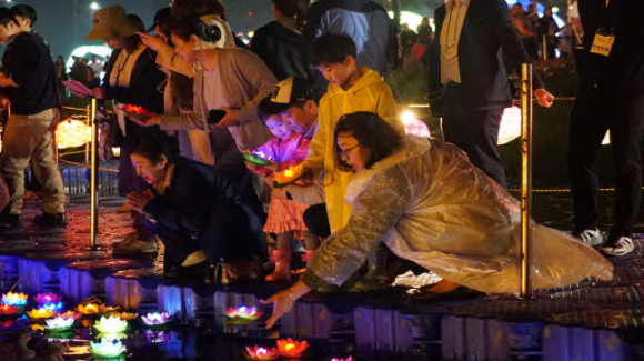 점등식에서 천여개의 형산강 연등숲이 금장대와 어우러져 장관을 연출 형산강 소원 유등 띄우기를 끝으로 이틀간의 여정 마무리 연등회 발상지 경주에서 처음 열린 연등축제, 3만여 명이 참여해 성황 이뤄