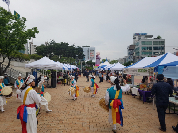시청광장에서는 장터의 성공기원과 안전을 위한 풍물패의 지신밟기 식전행사로 고조된 개장 분위기에 이은 개장식에는 500여 명의 인원이 참석해 장터 개장을 축하했다.