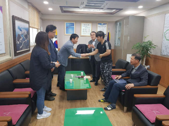 축산면사무소(면장 박창식) 직원들은 지난 14일 면장실에서 귀향인 김형일(축산3리, 31세) 씨의 둘째 아기 출산을 축하하고 격려했다. 또한 김 씨에게 출산장려금 등 군에서 시행하는 각종 출산지원사업도 상세히 안내했다.