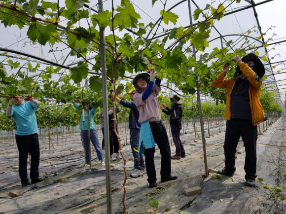 김천은 포도가 많이 생산되는 지역으로 본격적인 영농철을 맞아 일손이 부족한 포도 재배 농가에서는 적기에 포도순 따기를 하지 못해 속앓이를 하고 있는 실정이다.