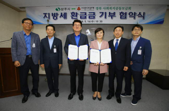 상주시는 2018년 5월 16일(수) 경북도내 처음으로 경북사회복지공동모금회와 업무협약을 체결하고 ‘지방세 환급금 기부제도’를 시행한다고 밝혔다.