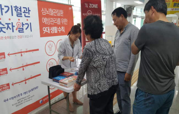 보건소 직원들은 건강부스에서 레드서클 존을 운영하며 혈압, 혈당 측정 등 기초검사와 1:1 상담서비스를 제공했다. 고혈압·당뇨병 건강관리법을 교육하고 심뇌혈관질환예방 9대 수칙 홍보자료(소책자, 리플렛)도 제공했다.