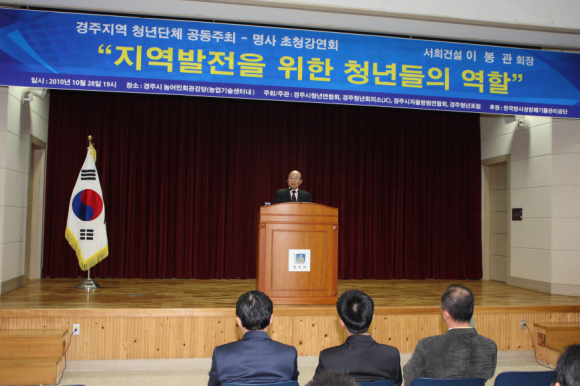 10월 28일 오후 7시 경주시 농업경영인회관에서 서희그룹 이봉관 회장 초청특강이 열렸다.