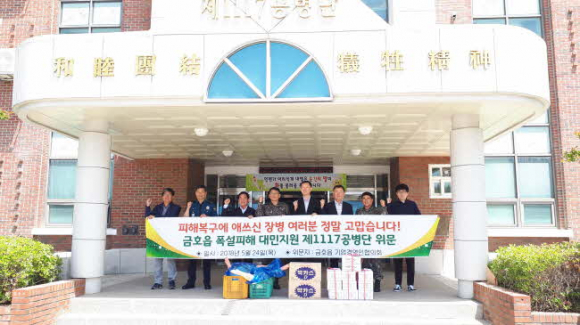 류시홍 금호읍기업경영인협의회장은 “폭설피해로 고통 받는 금호읍 농민들을 위해 노력해 주신 육군 제2150부대 장병들에게 감사의 마음을 전하며 장병들의 사기진작을 위해 금호읍기업경영인협의회의 작은 정성을 모았다”고 전했다.
