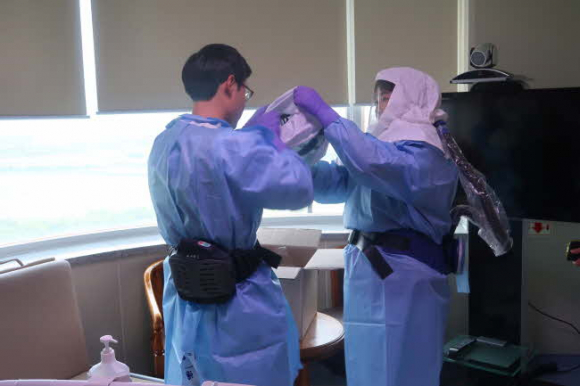동국대학교경주병원(병원장 나득영)은 5월 30일(수) 14시 5층 힐링홀 및 8층 국가지정입원치료병상에서 경상북도, 경주시보건소, 경주소방서와 합동으로 ‘신종감염병 발생 대비 모의훈련’을 진행했다.