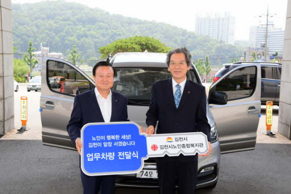 김천시는 지난 7일 시청 전정에서 관내의 대표적인 노인여가복지시설인 김천시노인종합복지관에 업무용 승합차량을 전달했다.