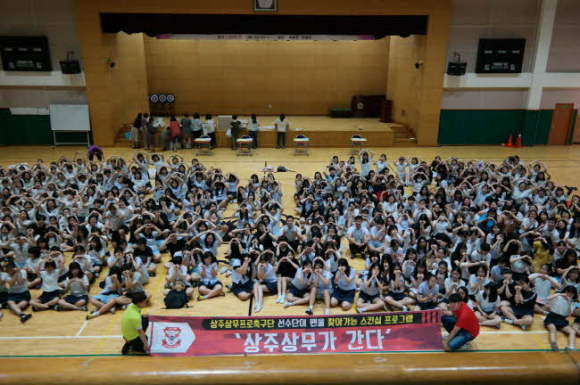 상주상무프로축구단(대표이사 백만흠)이 지난 7일 학업에 지친 학생들에게 활력을 주기 위해 ‘상주상무가 간다’ 프로그램으로 상주여자중학교를 방문했다.