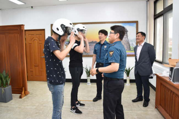 경주경찰서(서장 배기환)는지난 14일 원동기 운전면허증을 취득한 학교 밖 청소년 이◯◯(남, 16세) 등 2명에게 오토바이 안전모와 보호 장구를 전달했다.