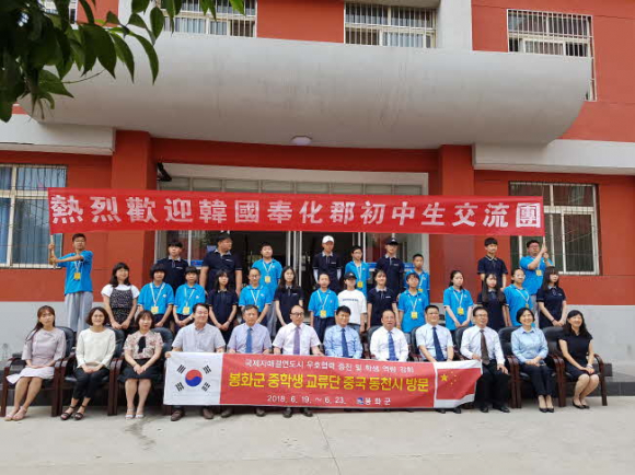 봉화군 소재 춘양, 소천, 석포, 청량 중학교 학생 12명, 교사 2명, 대표단 3명 등 17명으로 구성된 봉화군 국제학생우호교류단은 동천시 양광중학교를 방문하여 학교수업 및 동아리 활동 참관, 장기자랑, 문화체육 교류 활동, 현지 학생 가정 방문, 문화유적 탐방 등을 실시하며 양국의 문화를 상호 이해하고, 학생 상호간의 우의를 다질 수 있는 다양한 시간을 가졌다.