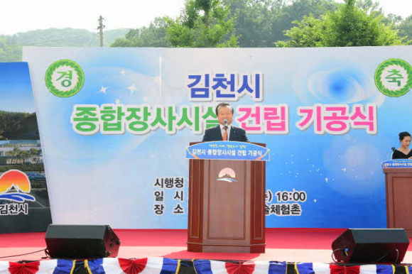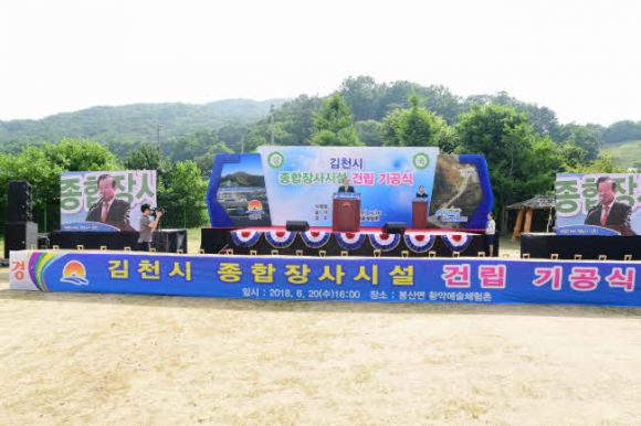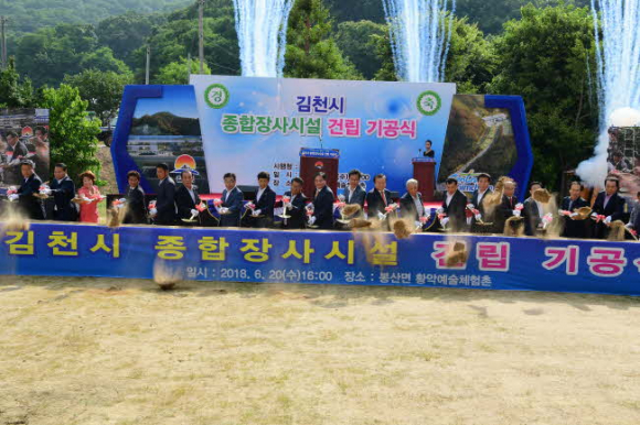 김천시(시장 박보생)는 6월 20일 김천시 봉산면 황악예술체험촌에서 지역주민, 기관단체장 등 700여명이 참석한 가운데 종합장사시설 기공식을 개최했다. 기공식은 그동안의 추진현황 홍보영상, 경과보고, 내빈축사, 기공발파 퍼포먼스 순으로 진행됐다.