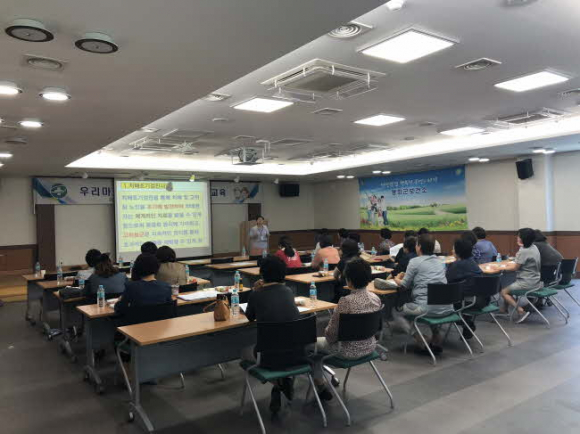 6월 19일(1차 교육)은 농약안전보관함 보급 마을 대표자를 대상으로 ‘생명사랑교육’을 실시하였으며, 교육을 받은 생명사랑지킴이는 추후 마을 주민들의 자살예방을 위한 다양한 활동을 실시할 예정이다. 6월 20일(2차 교육)은 건강지도자를 대상으로 치매 및 심뇌혈관질환 예방관리를 위한 교육을 진행하였다.