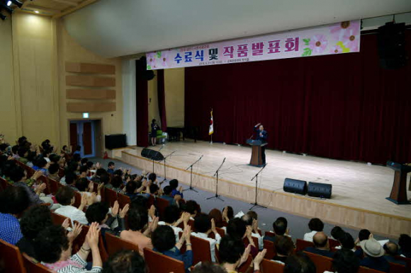 이날 행사는 배움에 대한 도전의식과 열정으로 시작한 5개월 동안의 무한한 역량의 결실을 선보이는 어울림 한마당 행사로서 수료식과 더불어 작품발표 및 전시회, 배움나눔장터도 같이 운영했다. 작품발표회에서는 합창, 연주, 무용, 난타, 요가 등 16개반 교육생들이 화합과 힐링의 무대를 연출했는가 하면, 작품전시장에서는 수채화, 유화, 서예, 문인화 등 예술의 혼을 담은 교육생들의 작품들을 만나볼 수 있었다.