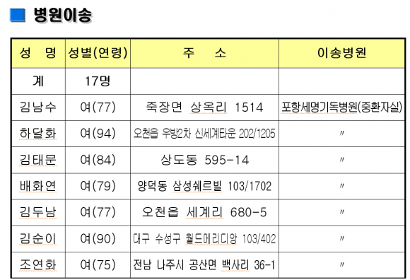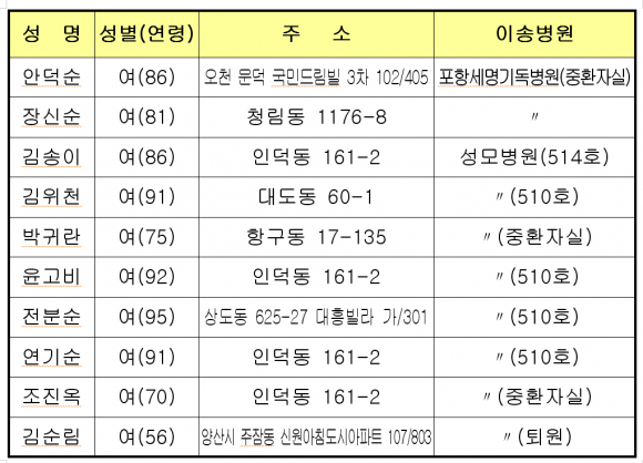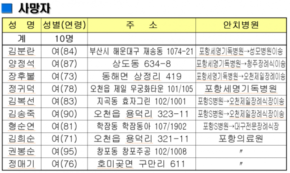 포항 인덕 노인요양센터 화재 사망10명, 단순연기흡인 17명등의 인명피해