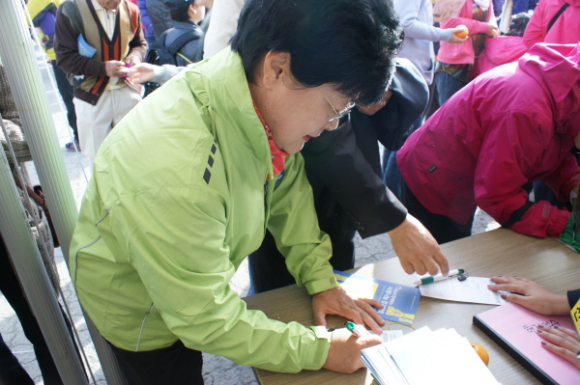 |  | | | ↑↑ 걷기대회 참가 접수를 하는 이옥희 시의원 | | ⓒ GBN 경북방송 | |