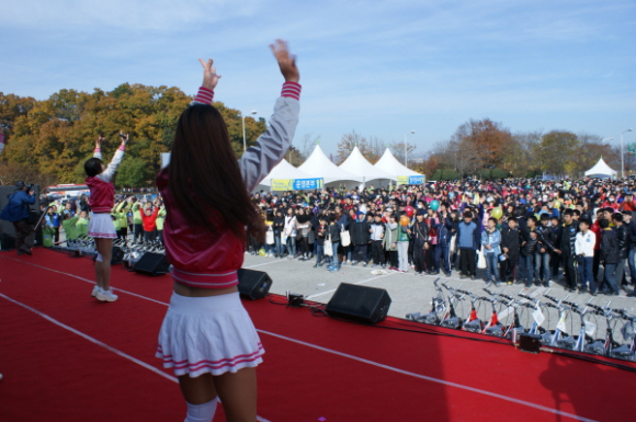 공단측은 이날 참가자들에게 선착순으로 2천명까지 기념품을 나눠주고 자전거 100대, 배드민턴 라켓 100개, 축구공, 농구공, 야구 글러브 각 50개 등 총 350개의 경품도 준비했다.