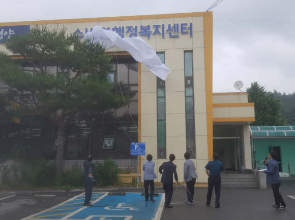 수비면행정복지센터(면장 김영묵)는 6월 26일 관내 기관단체장 및 이장 등 40여명이 참석한 가운데 ‘행정복지센터’ 현판식을 가졌다.