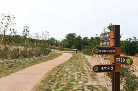 아지동 매립장 일원 7,864㎡ 부지에 자생수종을 이용한 생태 숲, 시민휴식 공간 등 다양한 조류가 서식할 수 있는 공간이 최근 준공돼 시민들에게 모습을 드러냈다.