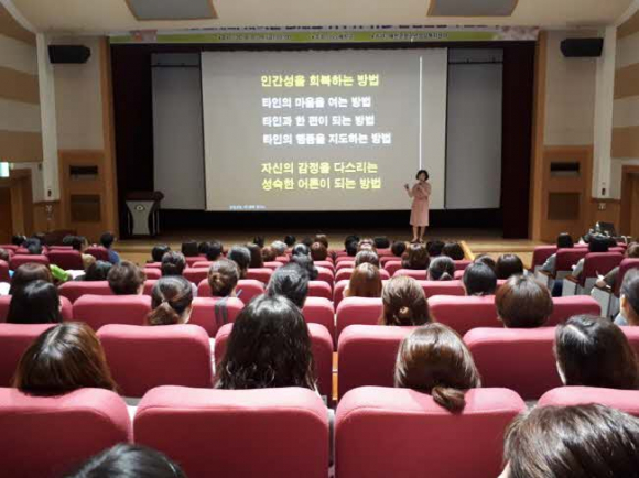 대구가족사랑클리닉 대표인 김미화 교수를 초청해 “4차산업시대 자녀를 인재로 키우기 위한 감정코칭”이란 주제로 진행되었다 부모의 역할, 사랑만으로는 부족하며 요즘 부모역할이 힘든 이유를 배울것이 너무 많은 아이들, 학교교육에 다양한 요구를 하는 사회, 너무 빠르게 변화는 사회 환경 등을 이야기 하며 부모들이 아동 청소년을 제대로 이해하기 위한 발달적 특징, 기질적 특징도 배우고, 자녀의 감정을 포착하기 위한 다섯가지 감정에 대해서도 배우는 등 유익한 정보를 공유했다.