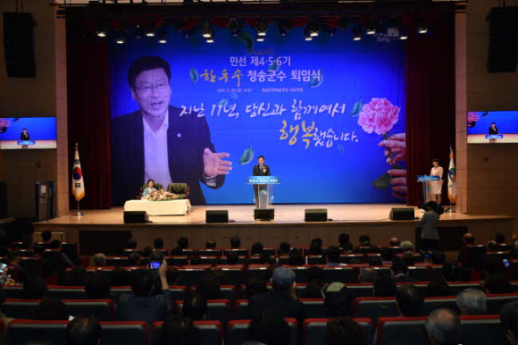 한동수 청송군수는 퇴임식에서 “청송 군민들과 함께 한 지난 11년은 생애 최고의 영광이었고 행복이었다.”며, “따뜻한 인연을 늘 가슴 깊이 간직하고 고향발전에 대한 열정과 군민에 대한 사랑은 영원히 이어나가면서, 앞으로 청송의 더 큰 도약과 변화를 위해 응원할 것”이라고 말했다. |