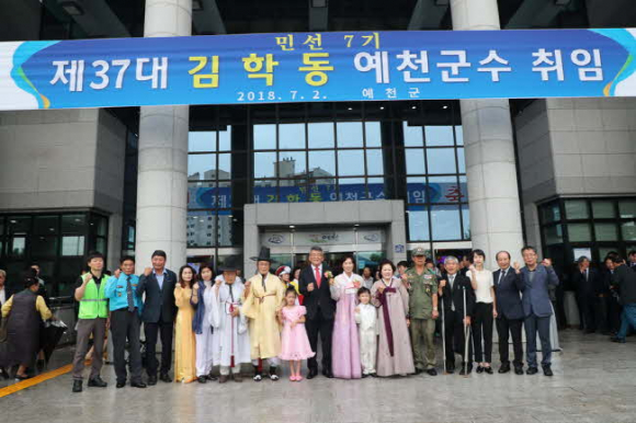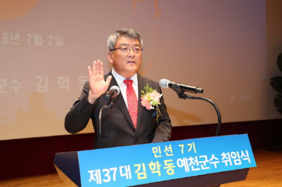 김학동 군수는 “쾌적한 주거환경이 돋보이는 경북 최고의 명품신도시, 청정 자연환경과 전통문화가 살아 숨 쉬는 원 도심, 그리고 부자농촌이 조화롭게 상생 발전하는 자랑스러운 예천군을 만드는데 혼신의 힘을 쏟겠다.”고 약속했다