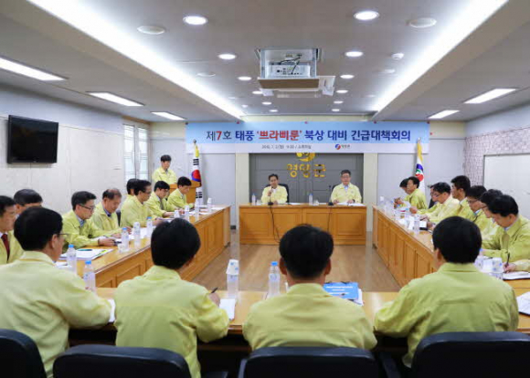 “취임식 후 재해대비긴급대책회의 주재”