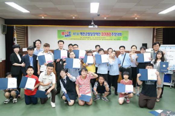 제1회 예천군 발달장애인자기권리주장대회가 란 주제로 예천군내 발달장애인 및 가족 내외귀빈 150여명이 참석한 가운데 6월 29일(금) 예천교육지원청 3층 대회의실에서 14:00~16:30 열렀다.