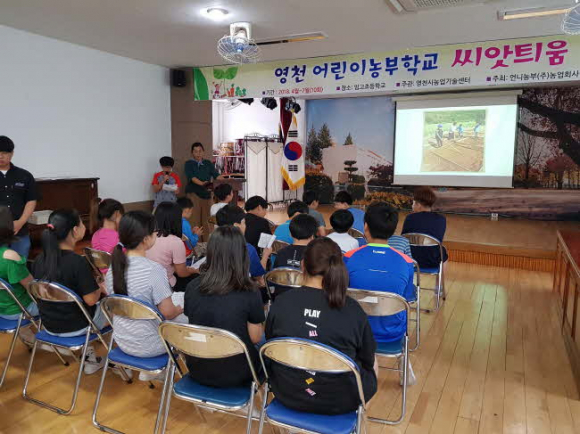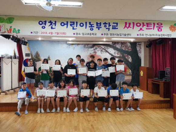 영천시는 농업을 주제로 한 원예활동 및 힐링프로그램을 통해 어린이 창의력․인성발달, 농업의 이해도 증진을 위한 ‘어린이 농부학교’를 시범운영했으며, 지난 3일에 임고초등학교에서 어린이 농부학교 수료식과 스쿨팜파티를 개최했다.