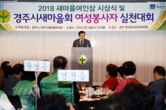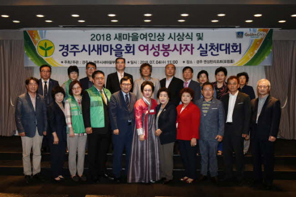경주시에서는 4일 행복한 사회조성과 지역민들의 소통⋅화합을 위한 ‘2018 새마을여인상 시상식 및 새마을회 여성봉사자 실천대회’가 켄싱턴리조트에서 경주시새마을부녀회(회장 김옥순)의 주최로 열렸다.