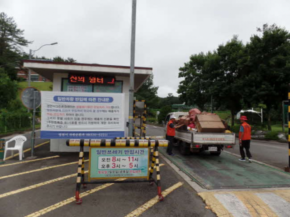 현재 그린환경센터로 일반인이 차량으로 직접 쓰레기를 반입하고자 할 경우에는 배출자의 신분을 확인받은 후, 배출자가 그 생활쓰레기의 발생 원인을 설명하고, 담당자 또는 주민감시원에게 쓰레기의 분리배출 상태와 반입이 가능한 폐기물인지를 확인 받고 반입하여야 한다.