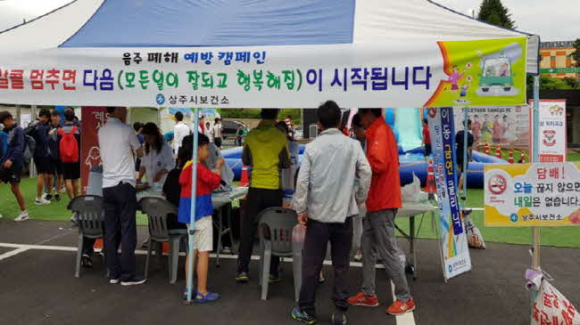 상주시 보건소는 “알코올 멈추면 다음(모든 일이 잘되고 행복해짐)이 시작됩니다.” 라는 슬로건 아래 상주상무프로 축구단 자원봉사자와 함께 7월8일 음주폐해 캠페인을 실시했다.