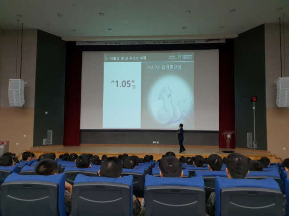 이번 교육은 저출산 문제와 인구절벽에 대한 이해와 문제점을 함께 공유하고 이를 극복하는 사례 등을 제시 하는 방향으로 진행되었으며, 미래의 성장 원동력이 될 군 장병들을 대상으로 했다는 점에서 뜻깊은 시간이 되었다.