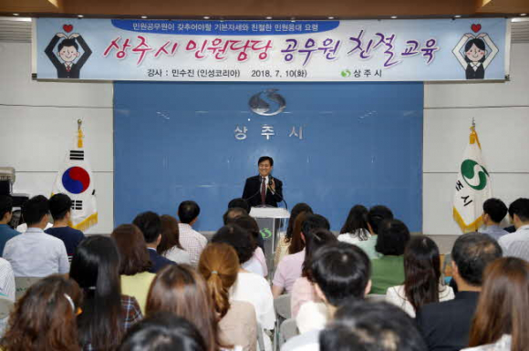 상주시는 7월 10일 시청 대회의실에서 시본청 인허가 담당자 및 읍면동 민원담당 공무원 120명을 대상으로 시민의 입장에서 시민의 눈높이에 맞추기 위한 친절교육을 실시했다.
