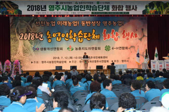영주시농업인학습단체는 12일 영주국민체육센터에서 회원 1,000여명이 참석한 가운데 ‘2018년 농업인학습단체 화합 행사’를 개최했다.