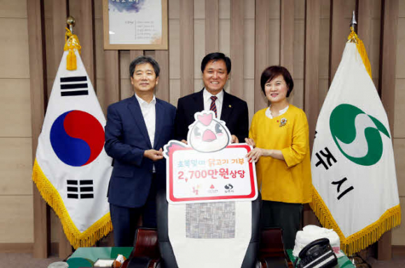 주식회사 올품(대표이사 변부홍)은 2018년 7월 12일(목) 상주시를 방문해 사회복지시설에 전달해 달라며 생닭 5,850수(2천7백만원상당)를 기탁했다.