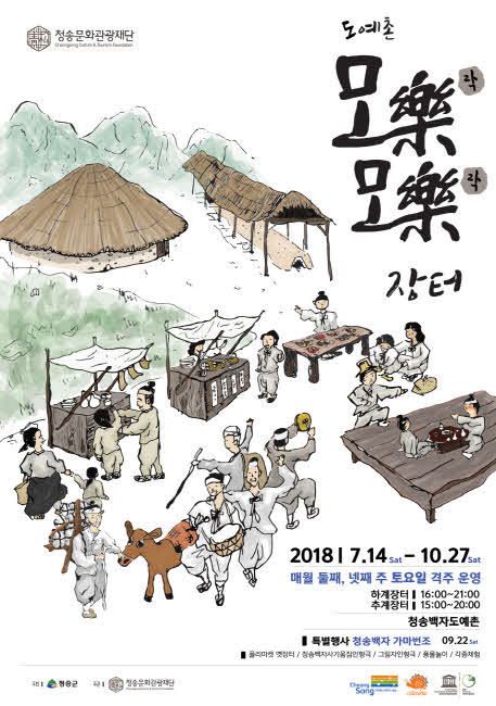 지난해에 이어 올해에도 운영되는 「2018 청송백자도예촌 모락(樂)모락(樂)장터」는 옛날 보부상이 드나들며 번성했던 청송의 옛 장터를 재현한 플리마켓 행사로 청송 지역의 원천 스토리(청송백자, 청송백자 보부상, 청송장)를 활용하여 지역을 대표할 수 있는 문화관광 브랜드를 개발할 목적으로 기획됐다.