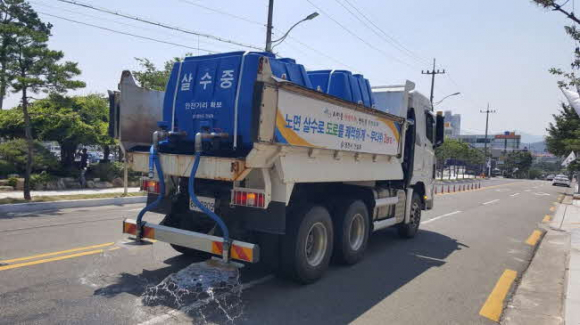 영천시(시장 최기문)는 연일 계속되는 폭염경보 발령에 따라 무더위를 식히고 시민들의 쾌적한 도로환경을 제공하기 위해 올 여름부터 자체 보유하고 있는 15톤 덤프차량에 살수장치를 설치해 이달부터 다음달 말까지 시내 주요 간선도로와 이면도로에 살수 작업을 탄력적으로 운행할 계획이다.