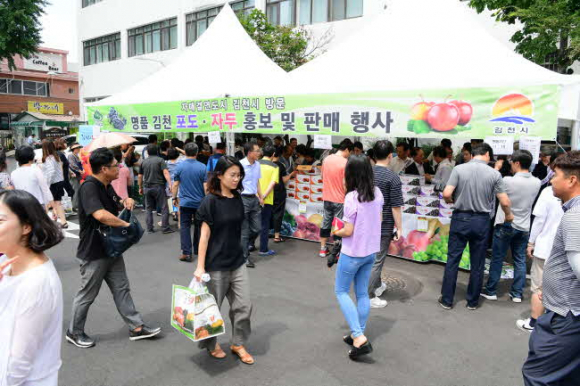 김천포도, 자두 자매도시 강북구 방문 직판행사 개최