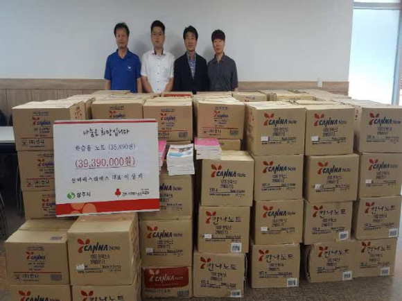 삼백에스앤에스(구 동영빌딩) 이상배 대표가 7월 17일 상주지역의 형편이 어려운 학생들에게 전달해 달라며 학습용 노트 35,890권(39,390천원 상당)을 상주시에 기탁했다.