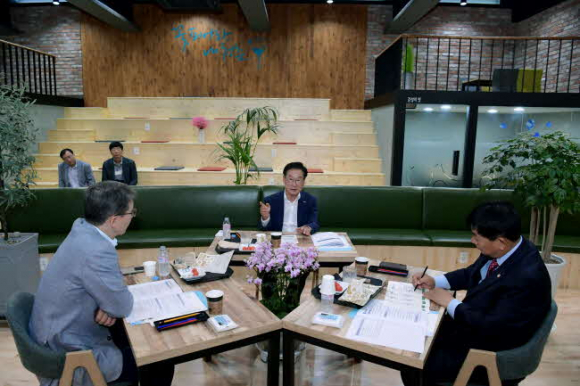 최기문 영천시장, 박종운 영천시의회 의장, 정서진 영천상공회의소 회장은 인구늘리기‧기업유치‧청년일자리 등 영천 발전 방안 논의를 위해 18일 영천시 상공회의소에서 조찬 회동을 가졌다.