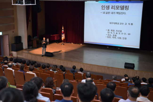 영천시(시장 최기문)는 20일 교육문화센터에서 고익환 대구대 교수를 초빙해 ‘인생 리모델링’이라는 주제로 도민참여 교육을 실시했다.