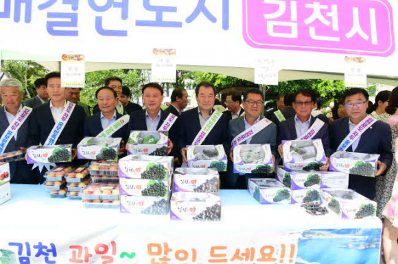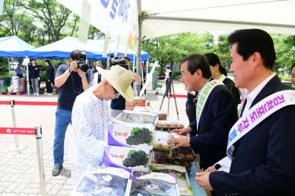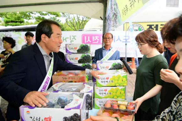 자매도시 군산시에서 김천포도·자두 직판행사 대호황