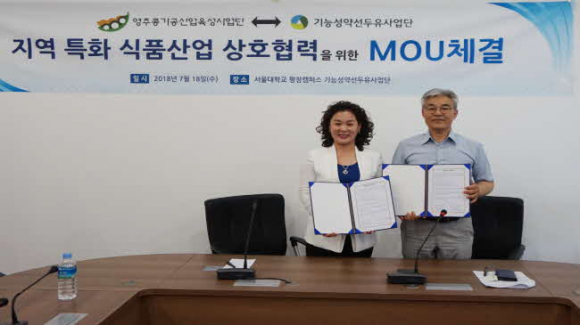 영주시(시장 장욱현)는 영주콩가공산업육성사업단(단장 강신호)과 (사)기능성약선두유사업단(단장 송원종)이 서울대학교 평창캠퍼스에서 향토자원 가공 및 특화 식품산업의 발전을 위한 업무협약(MOU)을 체결했다고 23일 밝혔다.