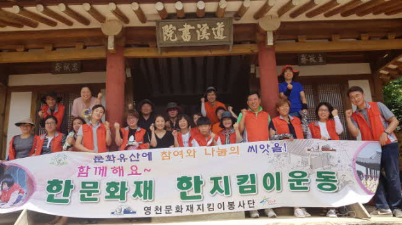 수 년 간 문화재 보존활동에 혼신의 노력을 기울이고 있는 영천문화재지킴이봉사단은 5개 단체가 연합으로 결성, 단체마다 특성을 살려 분야별 재능나눔 봉사활동을 펼치고 있는데 올해는 시내에 소재하는 조양각, 숭렬당, 영천향교 등 영천시민들의 정신적 문화유산을 대상으로 신발을 벗고 출입이 가능하도록 건물마루바닥에 천연밀랍초로 정비를 하는데 역점을 두고 대대적인 지킴이활동을 전개하고 있다. 한편 영천시는 2005년부터 문화재 보호를 위한 영천시민들의 참여를 바탕으로 ‘범시민 문화재가꾸기운동’을 문화예술과를 중심으로 전개하고 있으며 특히 전국에서 실시하고 있는 ‘한문화재 한지킴이운동’이 가족, 직장, 청소년 등의 자발적인 참여가 가장 활발한 지역으로 많은 찬사를 받고 있다. |